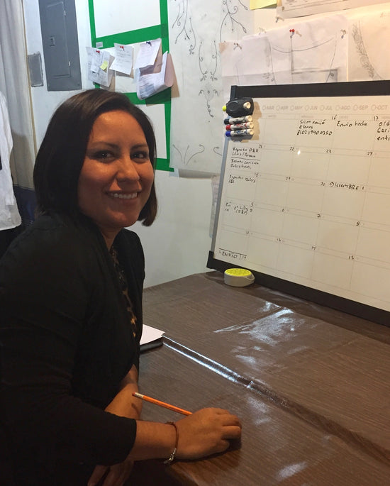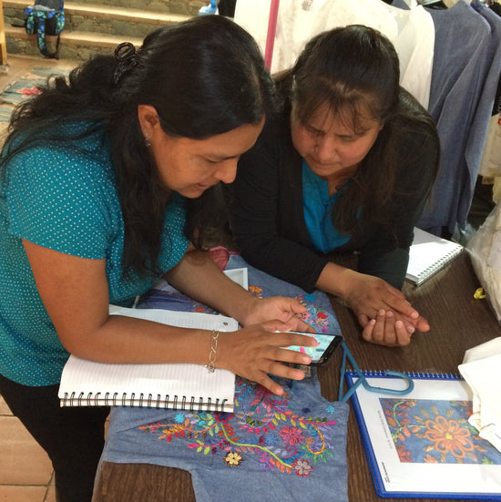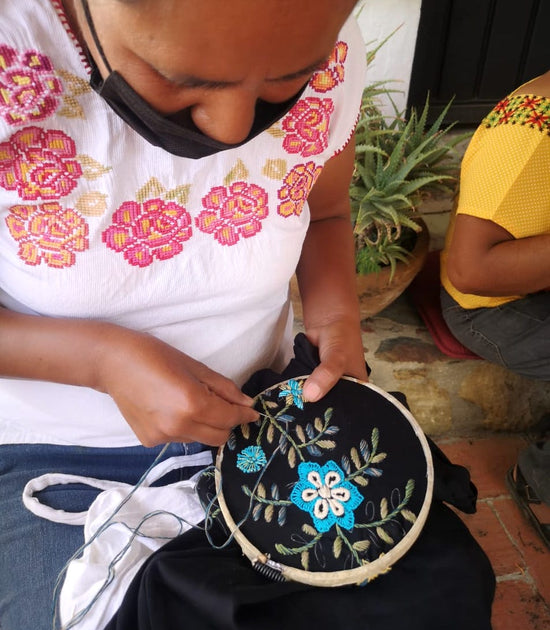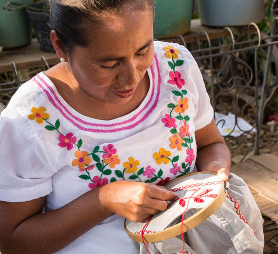Paty, expert embroiderer and indispensable Abrazo team member, manages an embroidery group and creates finely embroidered products for our socially conscious customers.