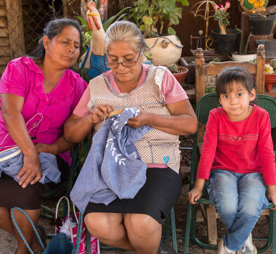 Talented embroiderers of Oaxaca realize the intricate designs of the Abrazo collection. Each piece is a form of wearable art, bearing the signature style of each woman.