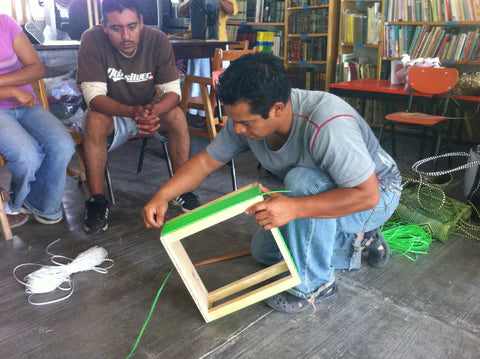 Alex teaching a workshop for weaving our handmade Etla totes. He travels to different communities teaching the technique so that we may offer job opportunities in remote communities of Oaxaca.
